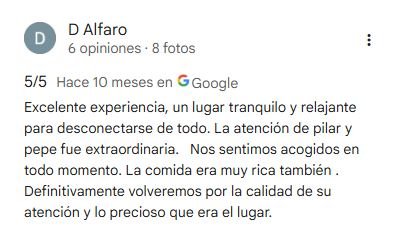 Abono vía transferencia del 50% para tomar la reserva.